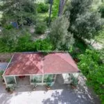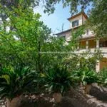 The villa is located within a fenced park of 6,800 square metres with established tall trees and typical mature native plants framing the garden. Water from the private well is used for irrigation and watering.