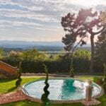 The grounds extend to approximately 7,550 square metres (1.9 acres) and include landscaped gardens, terraced olive groves, and an above-ground swimming pool. Several panoramic terraces provide open views across the Valdarno countryside and towards the Chianti hills. A former lemon house can be converted into garages, and private parking is available.