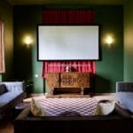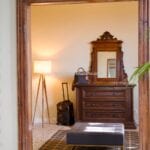 The main living level includes reception rooms, a lounge, a dining room, a sunroom, a library, a games room, a gym, and a dedicated cinema room. The kitchen connects directly to an outdoor terrace used for dining. Upper floors provide large bedroom suites, including a principal suite with a private sitting room, dressing area, terrace, and access to the turret level. Additional guest bedrooms and service areas allow flexible accommodation for family or staff. The lower level contains a traditional wine cellar carved into the hillside, a tasting room, storage, and a separate service apartment with independent access.