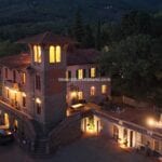 This Liberty-style villa for sale in Tuscany is located 4 km from Loro Ciuffenna, 26 km from Arezzo, and 55 km from Florence. Florence Airport is approximately 50 minutes away, making the property accessible to international buyers seeking Tuscany real estate with privacy and convenient connections.
