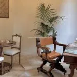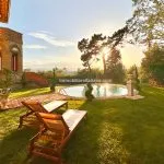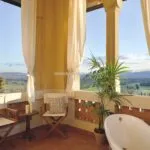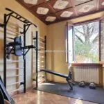 The main residence is spread over two renovated floors, offering five bedrooms (with the possibility of a sixth) and six bathrooms. Two of the bedrooms are luxury suites, including a primary suite with a private dressing room, sunset terrace, en-suite bathroom, and exclusive access to the turret. The interiors combine traditional Italian design with contemporary finishes, providing elegant living spaces throughout.