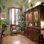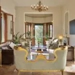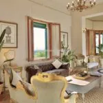This Liberty style villa for sale is located on the Tuscan hills of the Valdarno, just a few minutes from the medieval village of Loro Ciuffenna, recognized as one of Italy’s most beautiful villages. The property offers over 900 sqm (9,800 sqft) of living space and sits within a 7,550-sqm private park planted with 120 olive trees. The villa has been carefully restored, preserving its historic character while adding modern comforts.