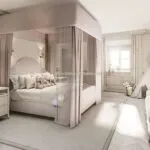 – Second floor: master suite with walk-in closet and two en-suite bathrooms, two small bedrooms with shared bathrooms, four bedrooms with private guest bathrooms, and common living room with service kitchen.