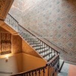 A private 30 sqm (323 sqft) cellar in the basement provides additional storage. The apartment’s restoration preserved its historic charm, including inlaid parquet floors, high ceilings with neoclassical frescoes, and exposed brick vaults.