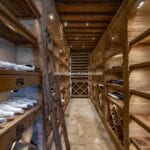 The first notable building, Villa A, spans 714 square meters and comprises 5 bedrooms and 7 bathrooms. Currently in the final stages of completion on the upper floors, this grand edifice serves as both a guest accommodation and a residence for the estate’s proprietors. The ground floor features a capacious dining room with a breakfast corner, a professional kitchen with a pantry, a home cinema, a private dining room, and a relaxation area with guest bathrooms and changing facilities for employees. The first floor houses an independent apartment accessible via a lift or internal staircase, boasting a living room, a library with a reading room, and three bedrooms, each equipped with an en-suite bathroom. Ascending to the second floor, another independent apartment can be found, complete with a living room and open kitchen, a generous walk-in wardrobe, and two bedrooms, each paired with an en-suite bathroom.