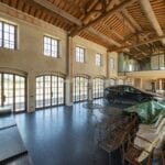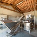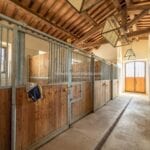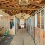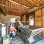 Additionally, the OP building spans 533 square metres and is divided into several sections to cater to the various activities of the estate. The central body houses the farm’s oil mill, featuring a pressing room and two changing rooms with a bathroom. To the left, six horse stalls, a saddlery, an animal care area, and a barn accommodate the equestrian facilities. The right wing of the building houses a large glazed hall, ideally suited as a display area for vintage cars, complete with a kitchen and equipped mezzanine, an oil storage warehouse, and an employee bathroom.