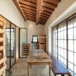 One of the structures, known as “Casa degli Orti” LM, covers an area of 78 square metres and currently serves the property’s employees. This building comprises a changing room, a canteen equipped with a kitchen, a service bathroom, and a recreation area.