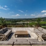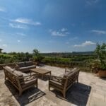Next, Farmhouse B sprawls across 425 square metres and offers 7 bedrooms, each with an en-suite bathroom. This two-story structure is dedicated exclusively to guest accommodation, with three bedrooms located on the ground floor and four on the first floor. Two of the upper-level bedrooms grant direct access to a spacious panoramic terrace measuring 74 square meters.