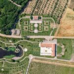 A verdant expanse of gardens and parks, covering 58,000 square metres, surrounds the buildings, including a picturesque artificial lake spanning around 3,000 square metres, featuring a small island. Additionally, three expansive paddocks measuring 1,500 square meters, 780 square meters, and 700 square metres, respectively, lie in close proximity to the stables, providing ample space for the horses to roam freely. The verdant spaces are interconnected by Italian-style paths and hedges, and numerous gravel areas offer convenient parking for cars. Adjacent to the eastern paddocks, a private heliport allows for direct access to the estate from the skies.