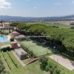 Situated atop the picturesque hills of the Maremma, a mere 15 kilometres from the Tuscan coast, an expansive estate covering 37.4 hectares awaits potential buyers. The property boasts an opulent luxury resort, a thriving vineyard, and an olive grove, all of which contribute to its allure. Within the property’s expanse, a series of meticulously renovated and newly constructed buildings can be found, serving both as gracious hospitality accommodations, offering up to 17 refined bedrooms, and as integral components of the estate’s agricultural production.