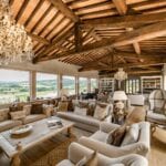 A highlight of the estate includes the presence of 2.8 hectares of vineyards and an impressive olive grove comprised of approximately 1,700 trees. Additionally, equestrian enthusiasts will appreciate the well-appointed horse stables, complete with paddocks, while guests can indulge in the beauty of a private lake, a helipad, playgrounds, and a swimming pool.