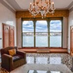 The palazzo (750 sqm – 8,069 sqft) is laid over three floors and protrudes several metres from the neighbouring buildings, thus having an unobstructed view towards both the East and the West along the Giudecca Canal.