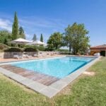 The villa has a beautiful well maintained Italian garden (about 2,800 sqm) which is recreated in the classical style with gravel paths and hedges with geometric patterns that frame green areas maintained with love and care by the owners. On a raised terrace, adjacent to the annex, is a second garden (800 sqm) that houses the 12 × 6 m swimming pool built in 2017 with salt purification and an automatic pH control unit. Surrounding the pool is a terracotta sunbathing area with umbrellas.