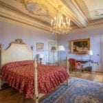 Going up to the upper floor, you reach a large reception hall with an office and tea room and two bedrooms with a shared bathroom in between (one of which also has a private sitting room).