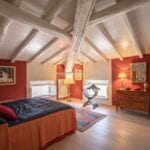 The frescoes were recovered and restored by a skilled specialist company from Florence. On the top floor, the ceilings feature wooden beams and roofs, painted in light colours that allow the rooms to remain bright whilst still maintaining the classic wooden beams.