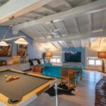 Finally, going up to the top floor we find a generous hall used as a games room, a small guest bathroom, and three bedrooms with private bathrooms (one of which has a private sitting room).