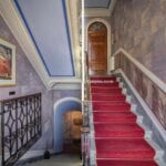 The floors on noble floors are marble, including the typical Lucca black-and-white checkered floors. There are also parquet floors, featuring exquisitely crafted inlays with floral and geometric patterns. The top floor, in general, features a cleaner and less artistic style, favouring practicality over historic decorations.