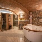 The basement has been converted into a wellness centre with a spa and sauna area and features beautiful vaulted exposed brickwork ceilings.