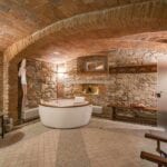 This has also been renovated, and while from the outside it resembles a manor house, inside it was decided to give it a more rustic and classical style, with exposed stone walls, wooden beams and terracotta floors.