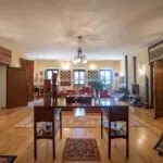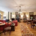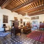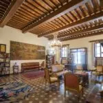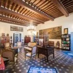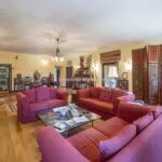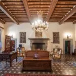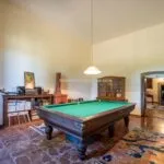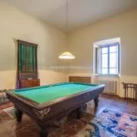 On the ground floor you enter an elegant and bright reception room with fireplace, characterized by a ceiling almost five metres high with large wooden beams. At the four corners of the villa we find a billiard room, the spacious eat-in kitchen, a dining room with exit to the garden, the library / reading room with private office and bathroom and a small bedroom with private bathroom. The villa also has a noble chapel (20 sqm) and a small garage (20 sqm).