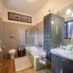 The guesthouse has a surface area of 105 sqm – 1,130 sqft with 3 bedrooms and 3 bathrooms. it is a stone building, set a few steps from the villa, laid over two floors. The lower floor accommodates two independent bathrooms and two bathrooms, while the upper floor is made up of a spacious living are with cooking corner and a bedroom with bathroom.