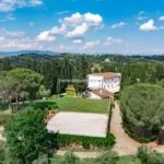 Luxury Italian estate for sale, located near San Miniato, castle style villa, annexes, 20.8 hectares (51.4 acres) of land, vineyard, olive grove.