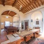 A short distance from the villa, beyond the chapel, is the old farmhouse. On the ground floor is a series of large warehouses (250 sqm – 2,689 sqft), which were once used to shelter animals and agricultural equipment. The building could still be used for agricultural purposes, or converted to a different use after verification with the competent authorities. On the first floor, on the other hand, is the caretakers’ apartment (104 sqm – 1,119 sqft, 2 bedrooms and 1 bathroom) consisting of a large living area with a terrace and open kitchen, closet, two bedrooms and bathroom.