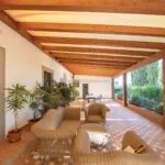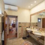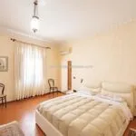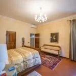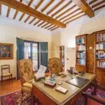 The villa itself is spread over three floors and boasts five spacious bedrooms and four bathrooms. The ground floor houses the reception area, consisting of four large rooms with beautiful wooden beams and terracotta floors. On the western side of the level, you will find the large formal dining room and a bedroom with an en-suite bathroom at the end of the corridor. Ascending to the piano nobile, you will find a landing that leads to a bedroom with an en-suite bathroom on one side and a central sitting room on the other. From here, you can access two additional bedrooms with a shared bathroom and a reading room that leads to the last bedroom with a private bathroom. On the top floor, you will find the building’s lofts, which can be used as playrooms and/or additional bedrooms.