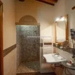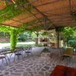 The main farmhouse, a 461 sqm (4,960 sqft) stone building, was likely once a small convent. It was restored in the early 2000s and is now divided into multiple units. Communal spaces include a reception area, a guest restaurant with a professional kitchen and outdoor dining pergola, guest restrooms, and storage rooms. The accommodations are as follows: