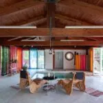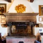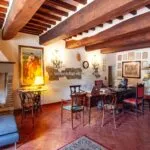 The renovation preserved the building’s character using high-quality materials such as handmade pink terracotta tiles, brick vaults, exposed beams of chestnut and oak, and frescoes by a recognized artist.