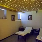 The 10,000 sqm landscaped park is filled with mature trees and flowers, creating shaded areas for guests to relax. The grounds also feature a play area for children, a fitness trail, and a 14 × 7 m swimming pool with a terracotta sunbathing area. A designated helicopter landing area allows for direct access to the property.