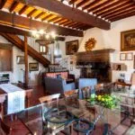 This luxury relais for sale is located in the Tuscan hills near the Umbria border, close to Cortona and Lake Trasimeno. Dating back to the 16th century, the property has been fully renovated and modernized while preserving its historic charm. It includes five self-contained guest apartments, additional guest rooms, and a landscaped park with a swimming pool. The estate spans approximately 4.6 hectares and features a small vineyard and olive trees.