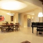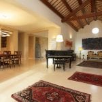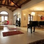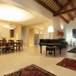 The interiors are modern and well maintained with large and bright rooms. The ceilings are high and boast wooden beams and terracotta tiles, while the floors are made of excellent quality white marble.