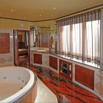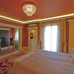 At the top of the staircase there is a cinema room, on the right there are a master suite and a bedroom with en suite bathroom. The Master suite comprises a bathroom, a walk-in closet and a make-up room.