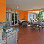 The property is surrounded by a perfectly maintained fenced garden, with hedges, palm trees and flowers, and it is completed by a private dock and a sandy beach. In addition to the 3-car garage on the basement floor, there are four parking spaces outside the villa.