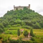 The access road climbing up the mountain, starting from a handy parking space right below the castle, is a particularly distinctive aspect of the property as the path climbs the slope and enters the courtyard through the main portcullis of the castle.