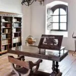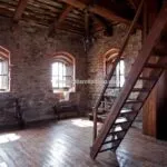 The caretaker’s apartment (75 sqm – 807 sqft) is located in another corner of the castle and is accessible by a side courtyard. It is divided into two stories and consists of a living room with kitchen and bathroom on the lower floor and two bedrooms with bathrooms on the top floor.