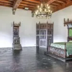 The top levels of the castle, in particular, retain manorial elements such as smooth hardwood flooring, painted wooden beams, coffered ceilings, etched stone fireplaces, antique furnishings, and a plethora of other details that undoubtedly add to the castle’s attractiveness.