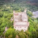 This magical castle property is perched atop Monte Crovero overlooking the Canavese in Piedmont, dominating the surrounding valleys with its towering form. The castle has been skillfully restored and transformed retaining and complementing its original features.