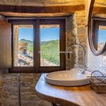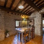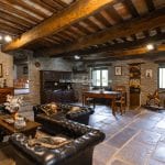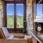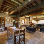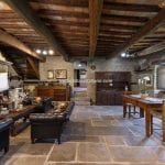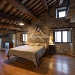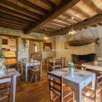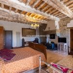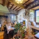 Inside, the restoration has preserved traditional elements, including original fireplaces, stone floors, oak-beam ceilings, and carved stone sinks. The lower floors, currently used for storage and cellars (approximately 372 m²), could be converted into additional guest facilities such as a wellness area or spa. Structural consolidation and insulation work were completed in 2005, when the hospitality business officially opened. It continues to generate steady income and enjoys excellent guest reviews.