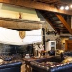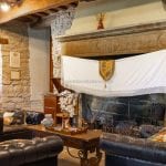 The castle is composed of six interconnected buildings located at the southern edge of a small hamlet. It includes a restaurant, large communal areas, ten guest bedrooms, and a private owner’s apartment with a kitchen, living room, and bedroom with an en-suite bathroom. The exterior retains its original medieval character, featuring solid stone walls and a cobbled lane that runs through the centre of the property.