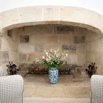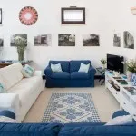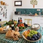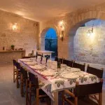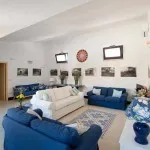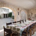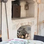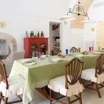 The dining room has a large fireplace made with local Apulian stone and is adjacent to the living room