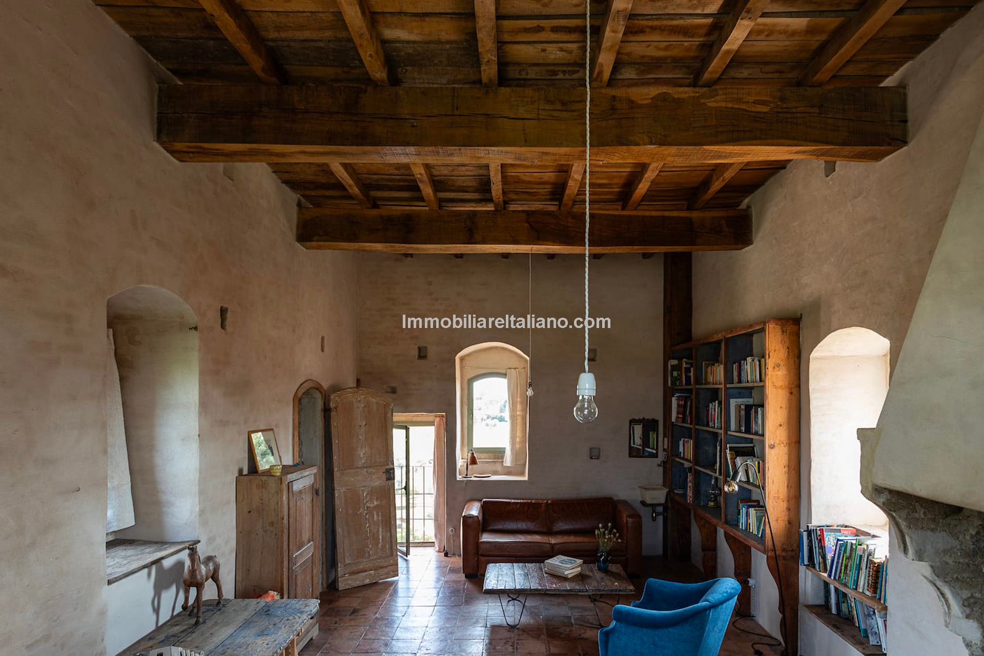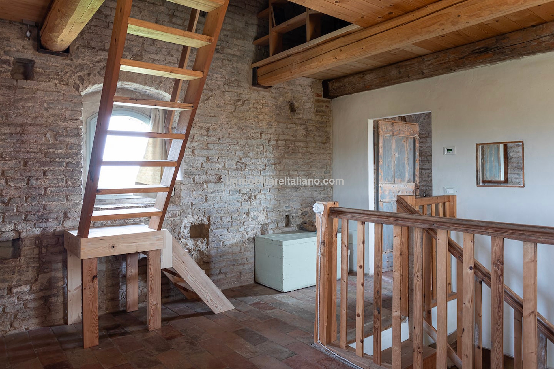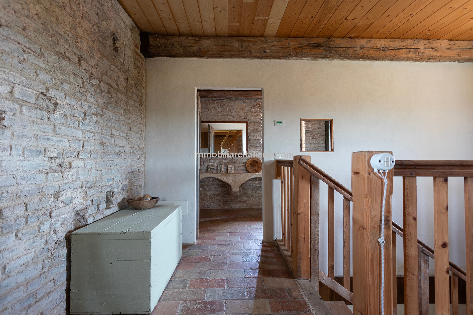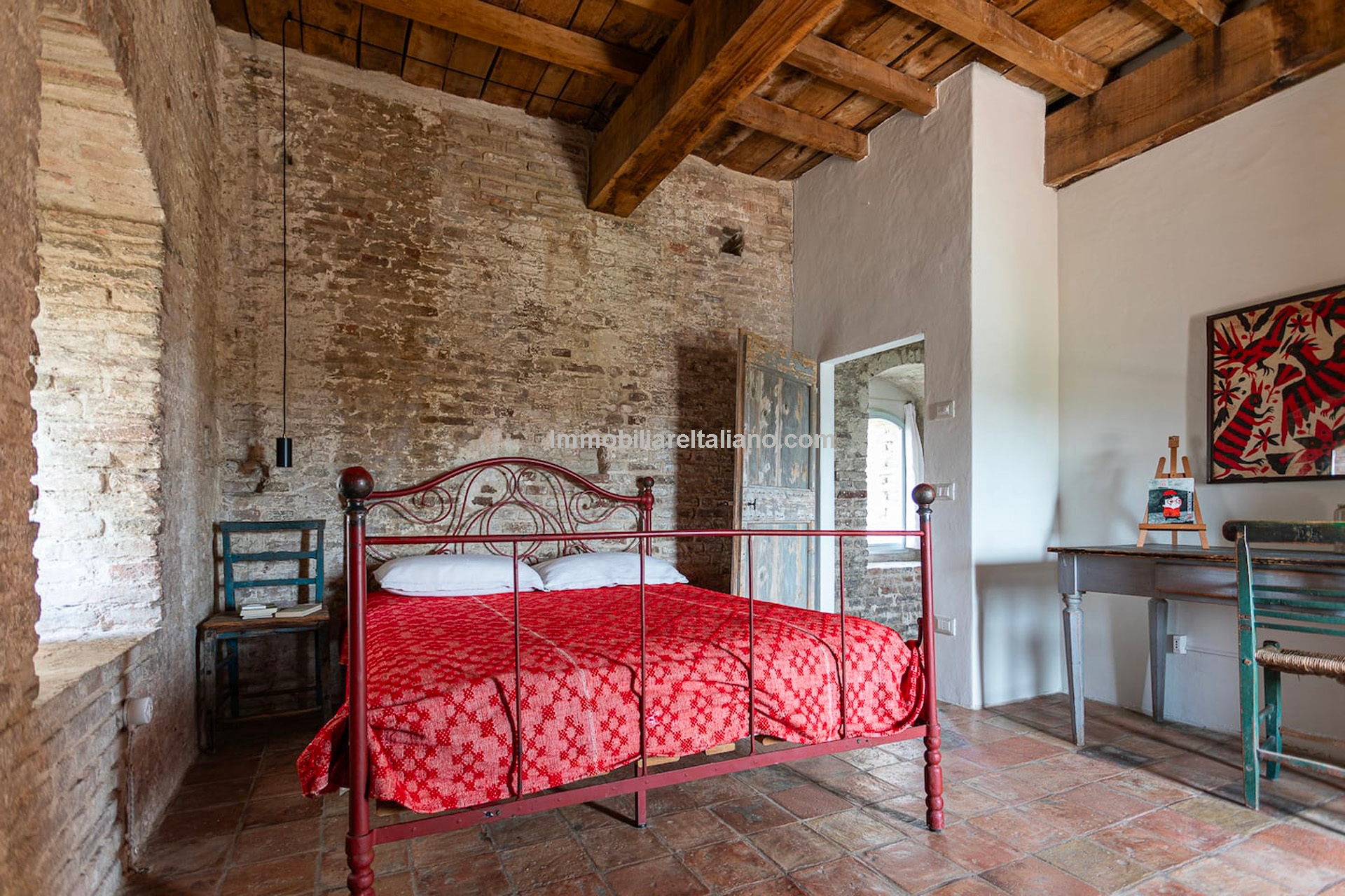 - MAIN FEATURES: Stone and brick walls, 17th-century original terracotta floor, vaulted ceilings, exposed wooden beams, original fireplace, panoramic terrace, Ghibelline crenellations, fenced garden