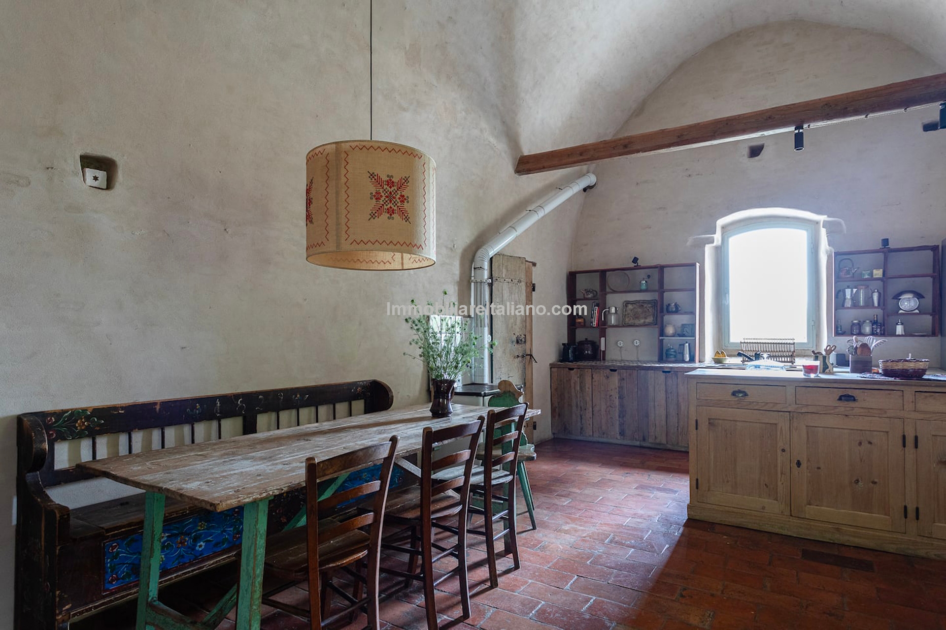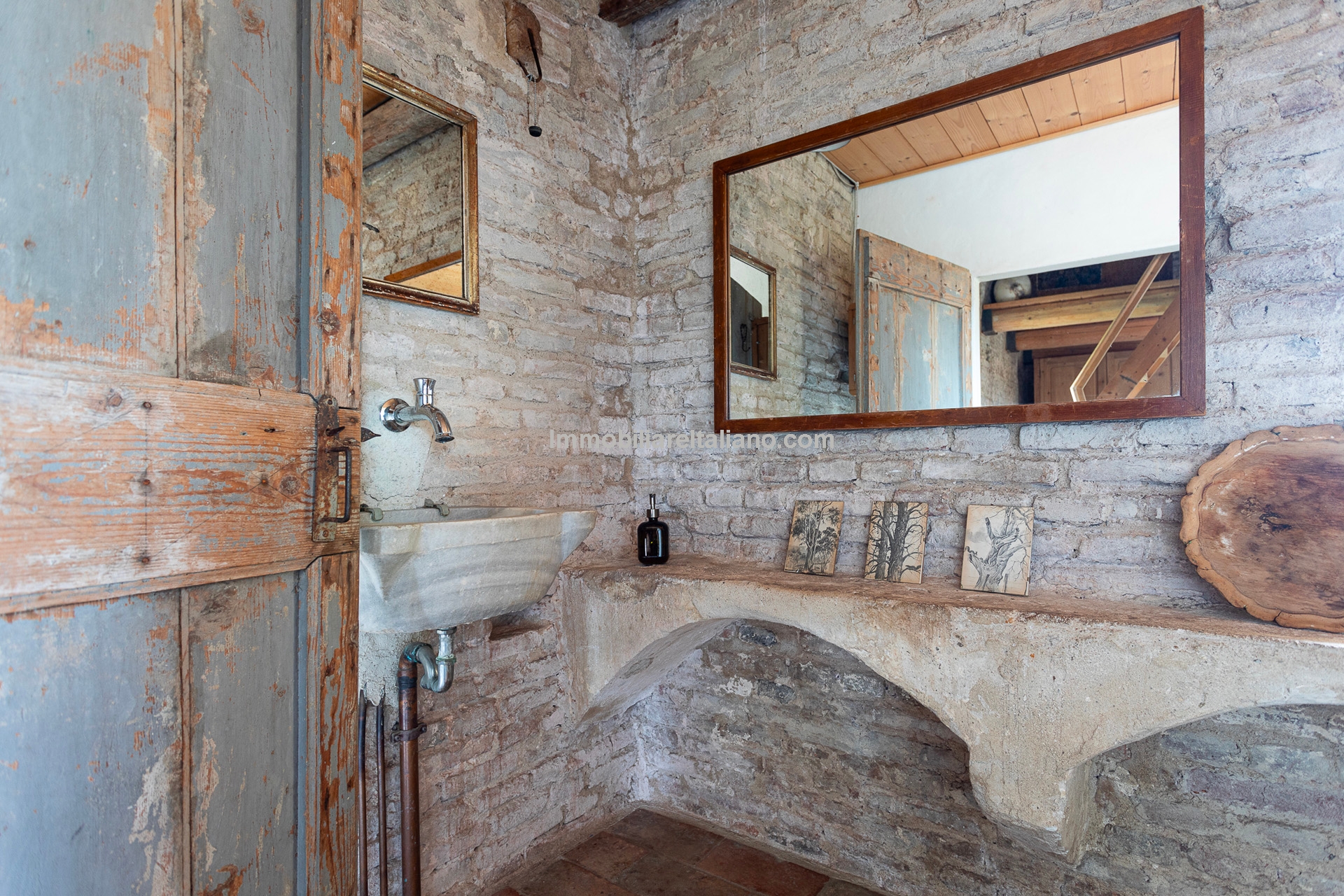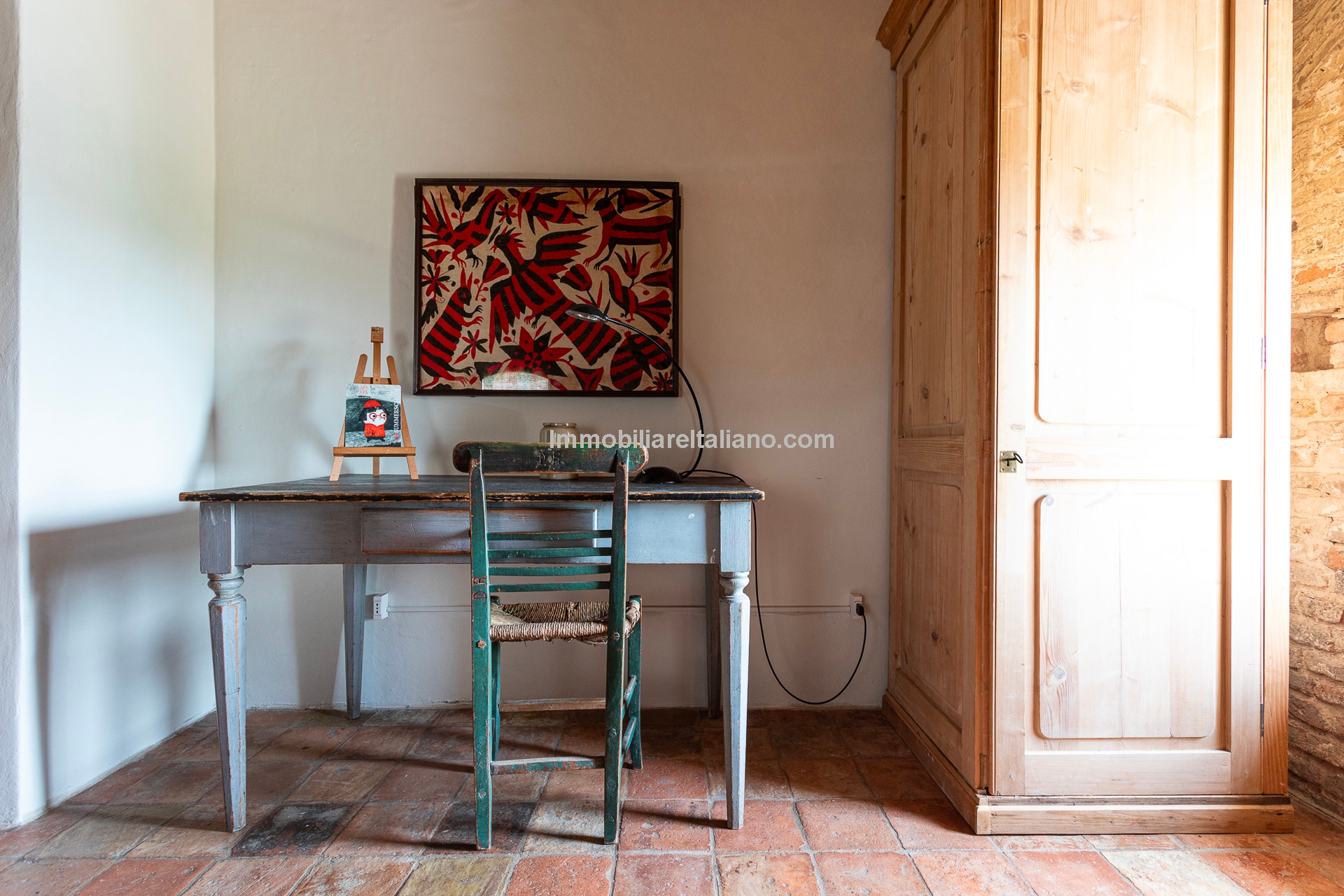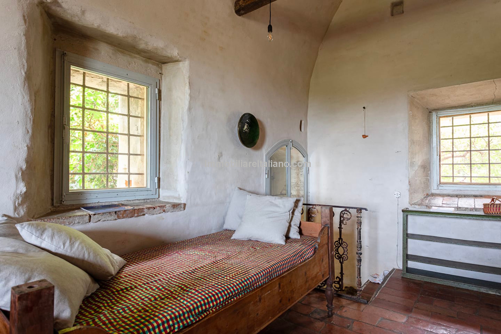 - MAIN FEATURES: Stone and brick walls, 17th-century original terracotta floor, vaulted ceilings, exposed wooden beams, original fireplace, panoramic terrace, Ghibelline crenellations, fenced garden