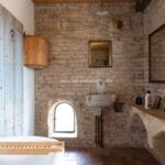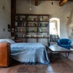 The renovation has retained key architectural elements, including stone and brick walls, original terracotta flooring, vaulted ceilings, exposed beams, and period fireplaces. The tower is finished with Ghibelline crenellations and includes a panoramic terrace with 360-degree views extending from the surrounding countryside to the sea. The terrace can be used as an outdoor living space for dining and relaxation.