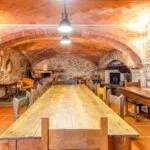 The main residence, stretching over 350 square metres – 3,766 sqft, is divided into two spacious apartments and additional rooms including a historic mill room, garages, and a laundry room.