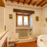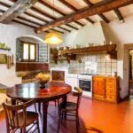 Outdoor amenities include a well-maintained garden, approximately 300 olive trees, and a 10 × 5 m swimming pool surrounded by a spacious solarium and pergola, perfect for relaxation and entertaining. The entire estate is enhanced by traditional Tuscan features such as stone and brick walls, wooden beams, terracotta floors, and picturesque brickwork arches.