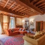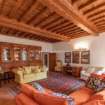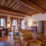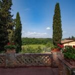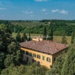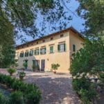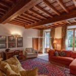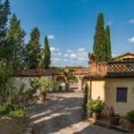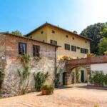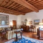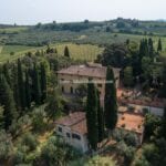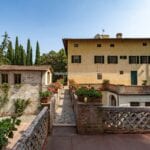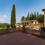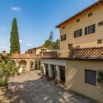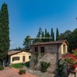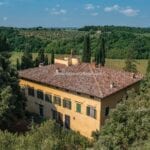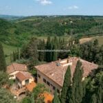 On the Tuscan Chianti hills near San Casciano in Val di Pesa and about 30 mins from Florence is this historic villa with guest accommodation, vineyard and olive grove for sale. The property (over 1,500 sqm) is in excellent condition and also offers offering three additional accommodation units for potential guests (14 bedrooms in total). The land of 5.3 ha is mostly occupied by Chianti Classico DOCG vineyards (3.2 ha) and olive groves (1.1 ha).