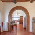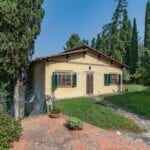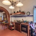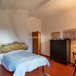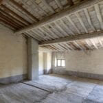 In front of the villa, across the small bridge, is a guesthouse (89 sqm – 958 sqft, 1 bedroom and 1 bathroom) on two floors: entering the level of the villa you find yourself on the upper floor where a bedroom and bathroom are located; the internal staircase then descends to the lower level where the living area with kitchen angle is located. To the side of the building is the old oven, still functioning and ideal for outdoor dining. Under the annexe, is a garage (116 sqm – 1,248 sqft) where cars and tools for working the fields and gardens can be stored.