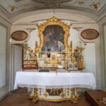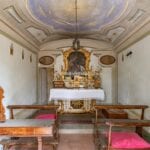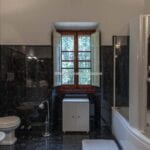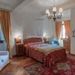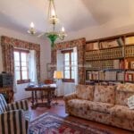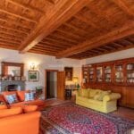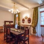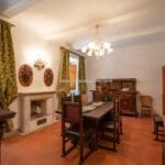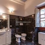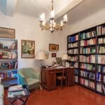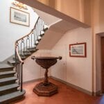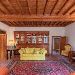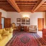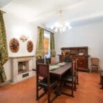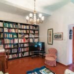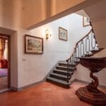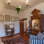 From here you pass on one side to the formal dining room, which in turn is connected to the kitchen, while the other side leads to the chapel (also accessible from the outside) and the first bedroom with bathroom. Also from the hall, a door on the side opposite the entrance leads to the villa’s monumental staircase to the upper floor.